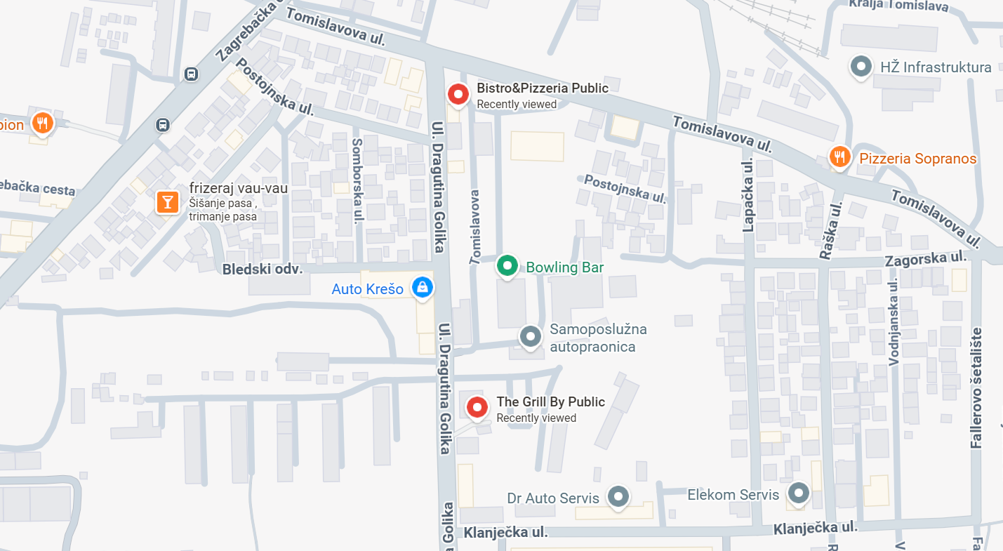 The Grill by Public u Zagrebu, smješten u naselju Voltino, jedna je od onih modernih roštiljarnica koja klasičnu balkansku kuhinju podiže na višu razinu kroz preciznu izvedbu i fokus na detalje. Smješten u ulici Dragutina Golika, restoran je dio šire Public gastro priče, poznate po kombinaciji suvremenog pristupa i provjerenih okusa. Naglasak je na roštilju kao glavnom adutu kuće, uz jela pripremljena po vlastitim recepturama i s naglašenom brigom o kvaliteti mesa i izvedbi. Jelovnik uključuje klasike poput ćevapa, pljeskavica i raznih grill plata, ali i širi izbor jela poput pašticade, telećeg pečenja, bifteka i obrok salata, čime izlazi iz okvira klasične roštiljarnice.